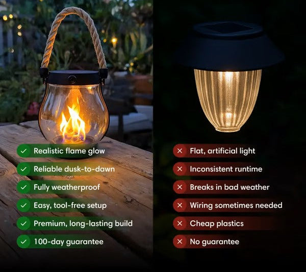 - Now that the days are getting shorter, Solara brings extra light and atmosphere to your outdoor space. A warm, flickering glow — just like real candlelight.